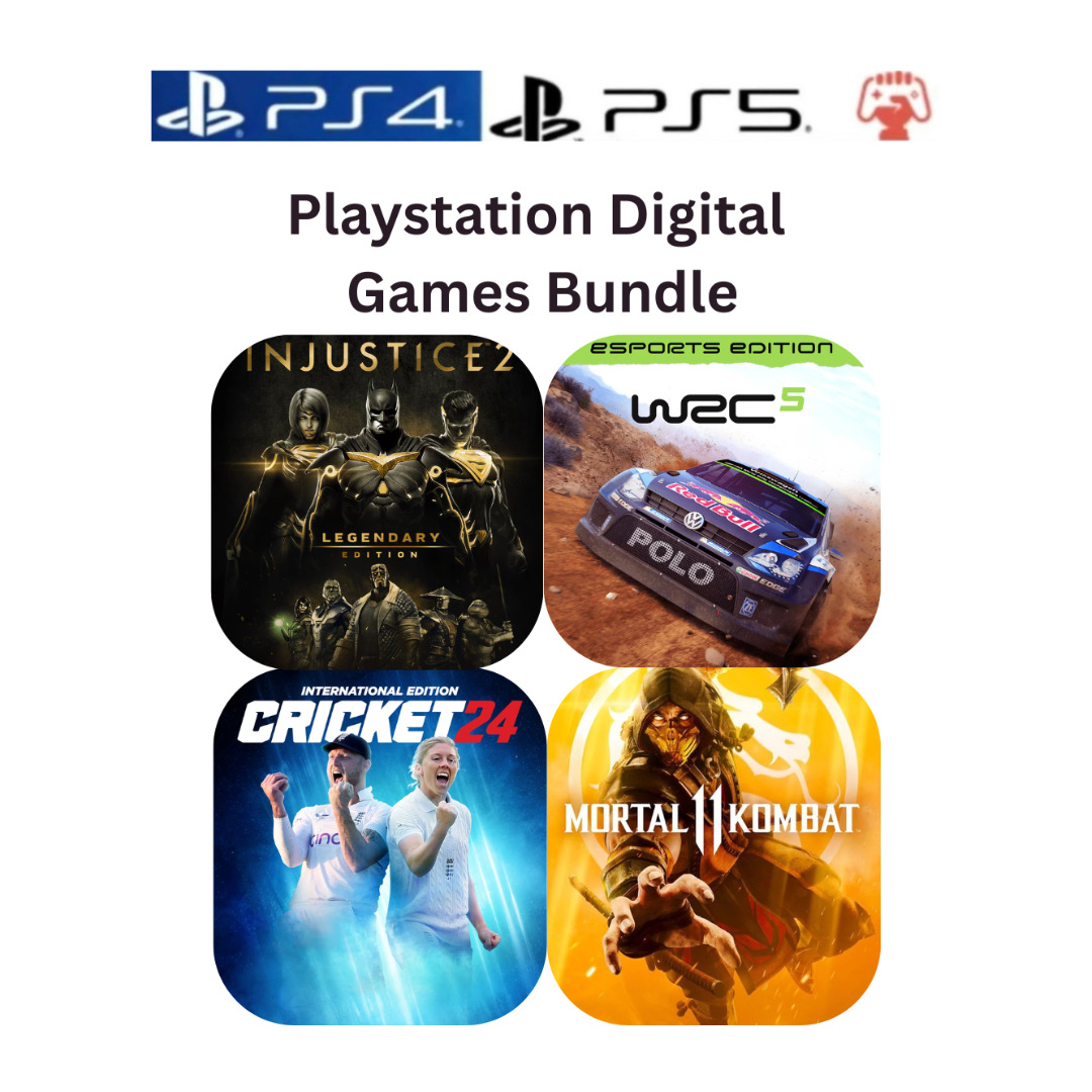 4-in-1 Action & Sports Game Bundle (Digital Edition) featuring Cricket 24, Mortal Kombat 11, Injustice™ 2, and WRC 5 eSports Edition delivers an exciting mix of realistic sports, brutal fighting, and high-speed rally racing. Step onto the pitch with the most immersive cricket experience yet, unleash cinematic combat with iconic fighters and superheroes, and master intense off-road rally stages across challenging terrains. This bundle includes four complete games with deep gameplay modes, competitive action, and hours of entertainment, making it perfect for fans of sports, fighting, and racing games. Download digitally and play instantly—no discs required. 4 Games Included for PlayStation 4 & 5- Cricket 24