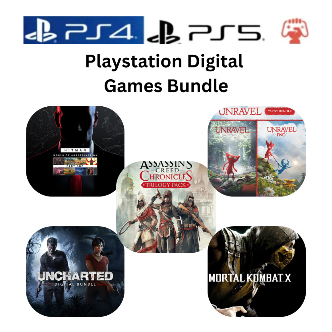 Get five incredible games in one ultimate collection: HITMAN: World of Assassination Part One, UNCHARTED 4: A Thief’s End & UNCHARTED: The Lost Legacy Digital, Assassin’s Creed Chronicles Trilogy, Unravel Yarny Bundle, and Mortal Kombat X. Step into the shoes of elite assassins in HITMAN, embark on epic adventures in UNCHARTED, and experience stealth and strategy in Assassin’s Creed Chronicles. Enjoy heartwarming puzzle-platforming in Unravel Yarny Bundle and intense fighting action in Mortal Kombat X. This bundle delivers stealth, adventure, strategy, puzzles, and fighting — everything a gamer could ask for in one package. 5 Games Included for PlayStation 4 & 5 HITMAN World Of Assassination Part One UNCHARTED 4: A Thief’s End & UNCHARTED: The Lost Legacy Digital Assassin’s Creed Chronicles – Trilogy Unravel Yarny Bundle Mortal Kombat X