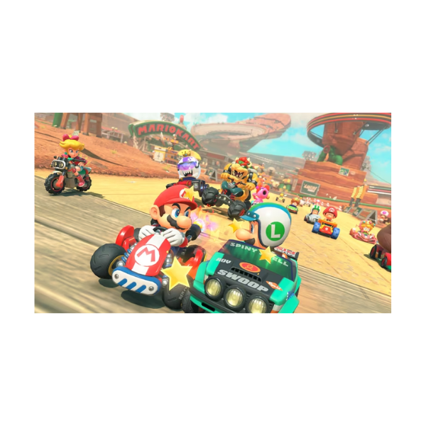Race across iconic tracks from around the globe — and beyond — in stunning detail, with new courses, characters, and karts from the Mushroom Kingdom and worldwide inspirations. Compete in massive 12-player online races, conquer world tours, or challenge friends locally in smooth split-screen multiplayer.